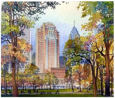 Shown above is a formal presntation for a building near one of my favorite public spaces, Rittenhouse Square in Philadelphia. (I don’t intend for this to be a sketchblog, but here are some of my own sketches from the square.)
